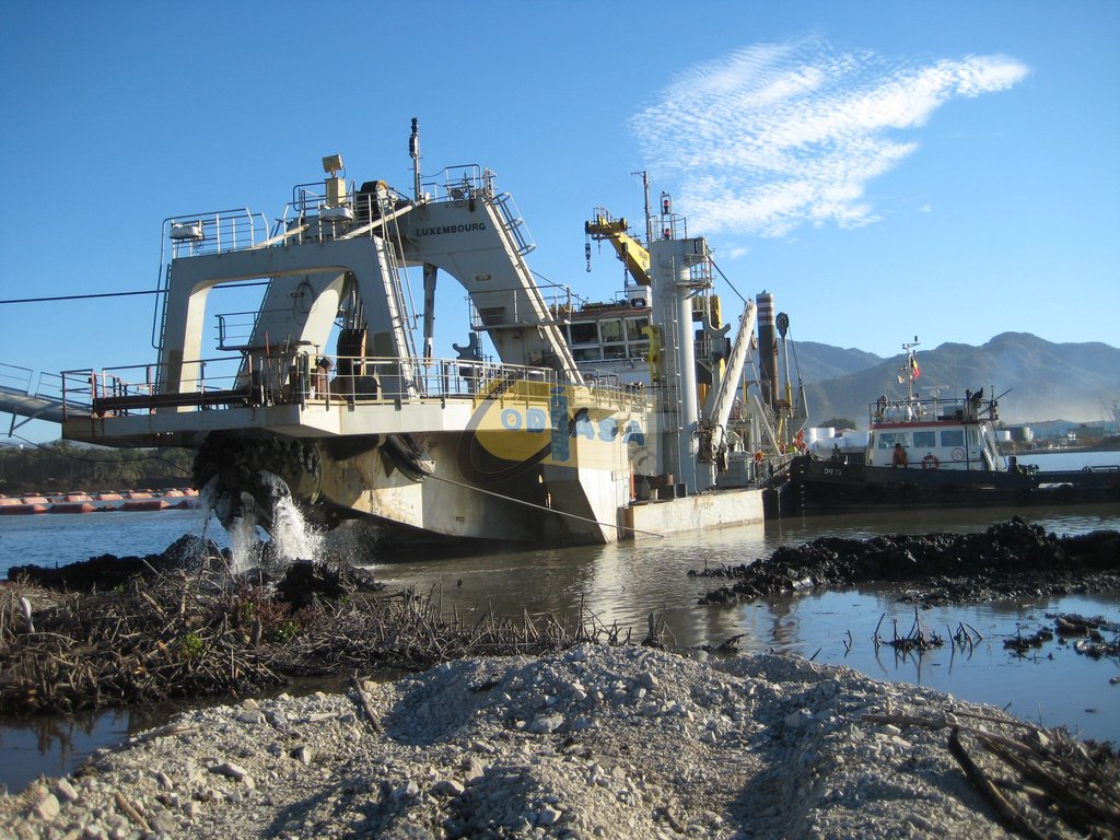 Para estos trabajos se utilizaron 2 dragas estacionarias con cortador de 700mm y una draga autopropulsada de tolva de 800mm y 6,500m3 de capacidad, para el procedimiento constructivo las dragas de cortador por la existencia de 2 puentes sobre el canal de navegación fue necesario trasportarlas por tierra desde la bocana hasta la laguna una distancia aprox.